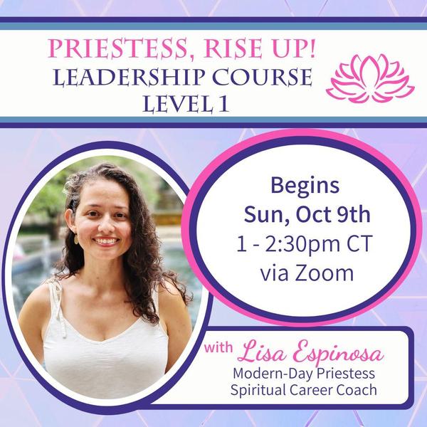 can expand your capacity to channel unconditional love. Beam love to Mother Earth. In addition, Lisa also reads an excerpt from her forthcoming book, Priestess, Rise Up! Sign up to Lisa's mailing list: *All spiritual paths welcome. *All genders welcome 1 Spot Left! Join me Sunday, for the Priestess, Rise Up course! Click HERE to read more. Early Bird Rate extended. Click HERE. LISA ESPINOSA is a Modern-Day Priestess, Spiritual Leadership Coach and the award-winning author of Answering Your Inner Calling. Her forthcoming book, Priestess, Rise Up!, is a spiritual memoir and guide for
